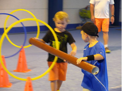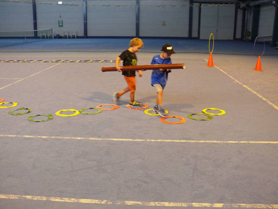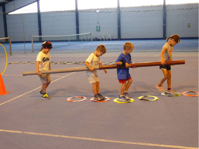 Diesmal erproben die Kids, wie man als Gruppe ein Ziel erreicht. Alle arbeiten zusammen, jeder nimmt auf den anderen Rücksicht. Und welche Gruppe das am besten kann, ist am schnellsten am Ziel.