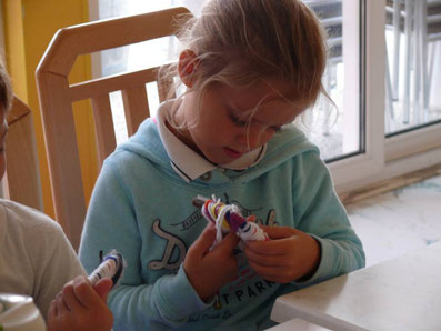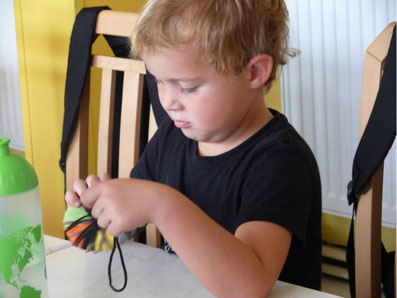... bis das Loch in der Mitte ausgefüllt ist. Puuuhh, das dauert lange. Aber es schult die Ausdauer und die Konzentration. Und man ist mächtig stolz, wenn man es geschafft hat. Das gibt Selbstvertrauen!