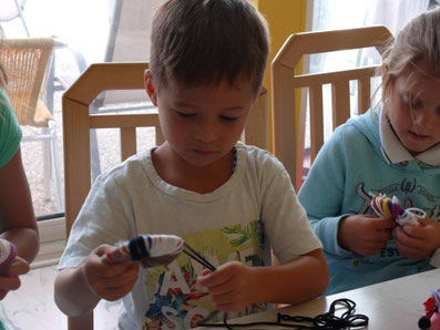 Einige Kids waren sogar so eifrig, dass sie noch ein zweites Bommeltier gemacht haben. Hier die Ergebnisse: