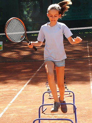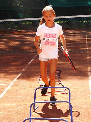 Beinarbeit ist extrem wichtig im Tennis. Außerdem ist es ein gutes Mittel, allgemeine Fitness und Beweglichkeit aufzubauen. Daher werden Übungen dieser Art ständig in das Training eingebaut.