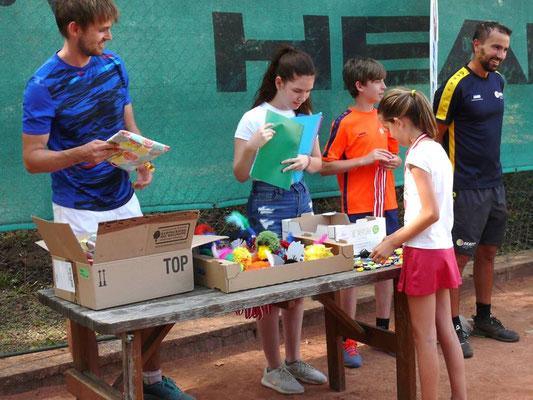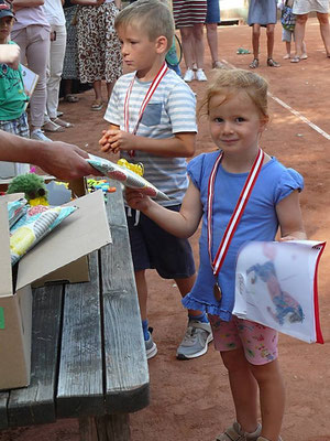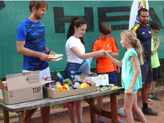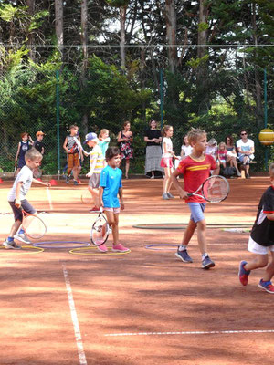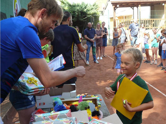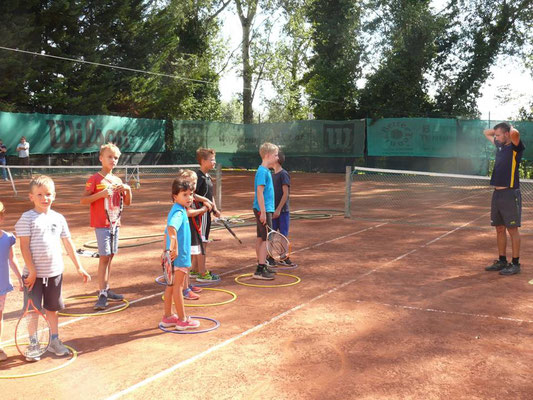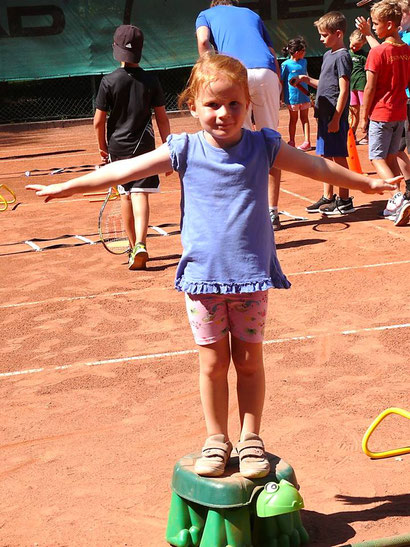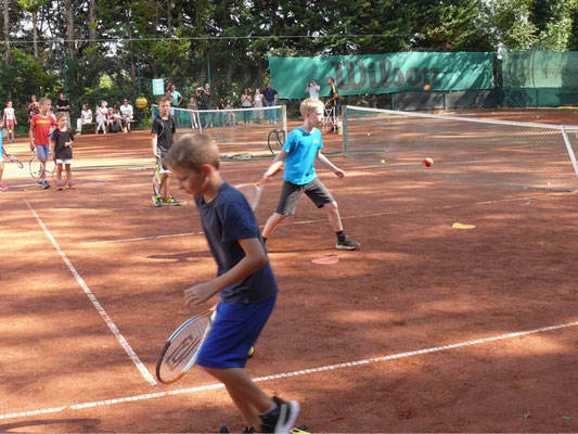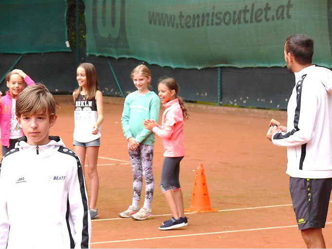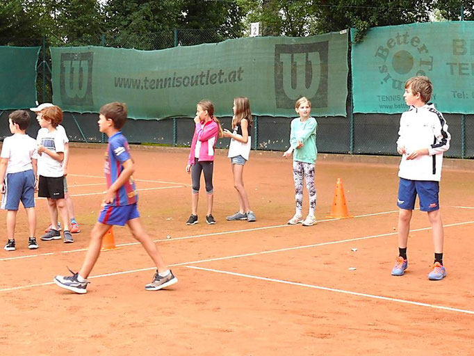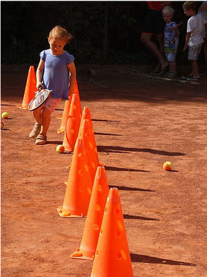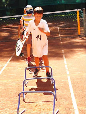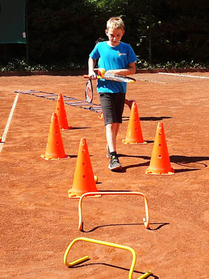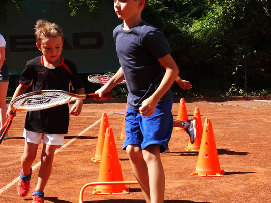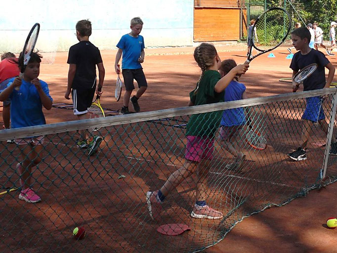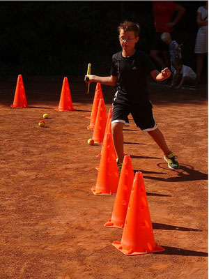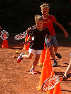 Nun war es Zeit zu zeigen, was jeder in der abgelaufenen Woche dazugelernt hatte. Dabei ging es nicht nur um den Umgang mit dem Tennisschläger, sondern auch um Schnelligkeit, Geschicklichkeit und Kondition.