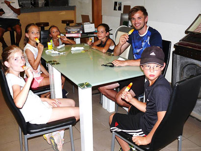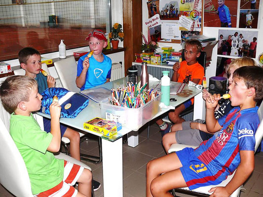 Nach dem Essen ging es dann wieder auf den Tennisplatz bzw. an die Lerntische.