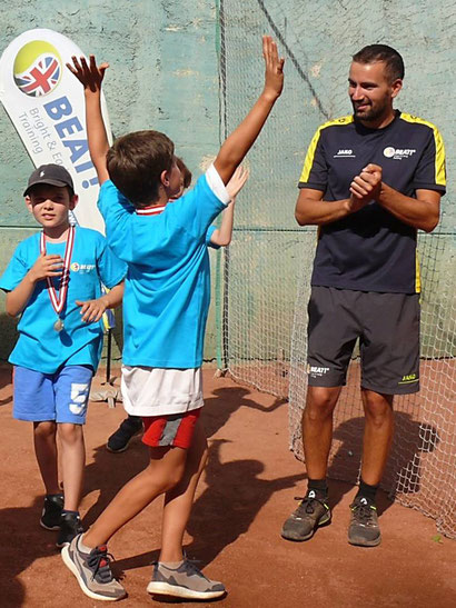 Diese wunderschöne Woche endet unter des spätsommerlichen Sonne, die immer mehr Schatten auf die Tennisplätze legt. Den nahenden Schulbeginn kann man schon sehr deutlich spüren. Aber genau soll es sein, denn das BEAT! - Camp hat unter anderem den Zweck, richtig aktiv zu werden und sich so auf das Schuljahr einzustimmen.